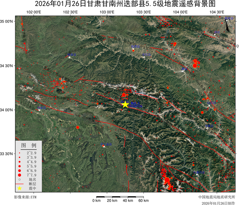 据中国地震台网测定,北京时间2026年01月26日14时56分在甘肃甘南州迭部县(纬度34.06度, 经度103.25度)发生5.5级地震,震源深度10千米。